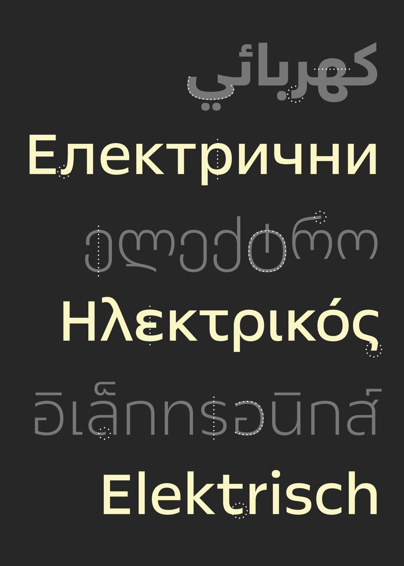 As part of a major shift to electric car production, the client needed a new brand and a new voice. This typeface is a clean and characterful sans serif typeface that embodies the brands bold move to a global outlook and an electric future – providing a consistent and recognisable voice across its global markets.