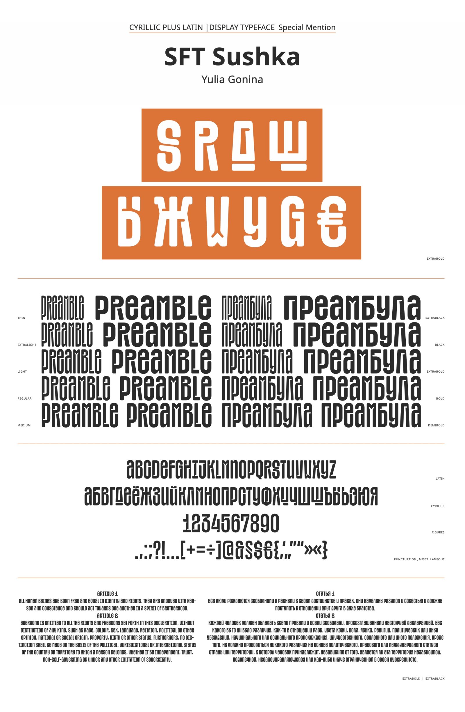 Due to the jury’s decision, this typeface has been moved from the B1 Cyrillic-Latin Text Typefaces to B2 Cyrillic-Latin Display Typefaces Category.