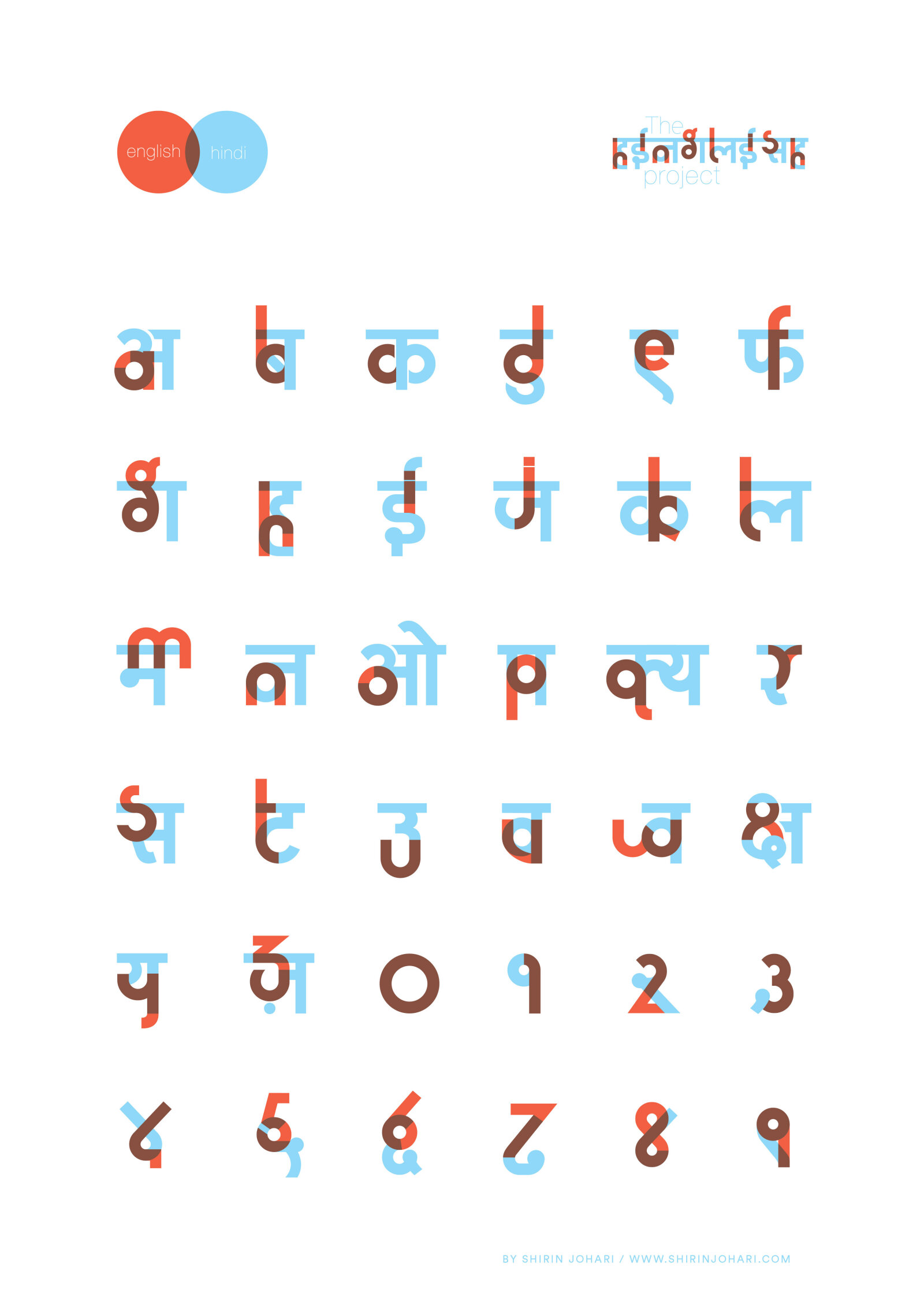 Despite the superficial distinctiveness of English and Hindi, the two borrow from the same phonetic pool - the Indo-European group of languages. Shirin Johari’s font design playfully highlights these commonalities and makes Hindi more approachable.