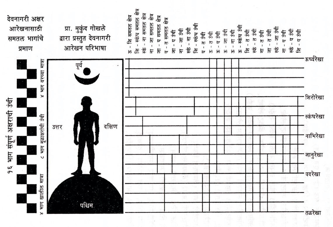 Devanagari the script of Hindi, Marathi, Nepali, Sanskrit, and several other languages is both structured, fluid, and human. For those new to it, the script can feel overwhelming: hundreds of glyphs, intricate conjuncts, vowel signs (matras), and marks that sit above and below a horizontal line. But, as Saxena writes in her article, what makes Devanagari seem complex is not its construction, it’s the absence of a common vocabulary for describing its anatomy.